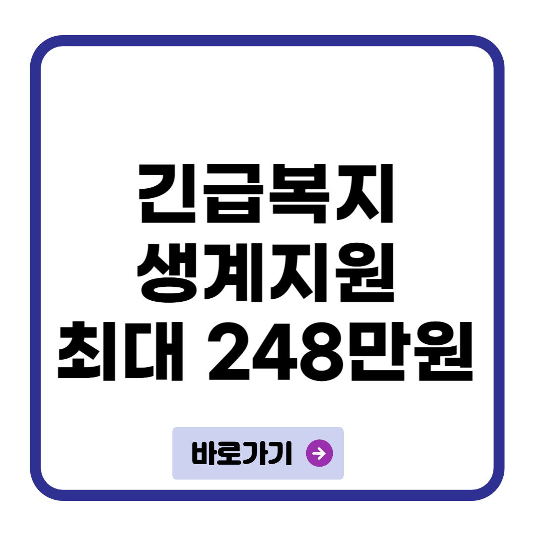 갑작스런 실직, 질병, 화재, 가정폭력 등으로 생계가 곤란해진 경우 중위소득 75% 이하 가구를 대상으로 생계비를 최대 월 248만 원까지 지원합니다.